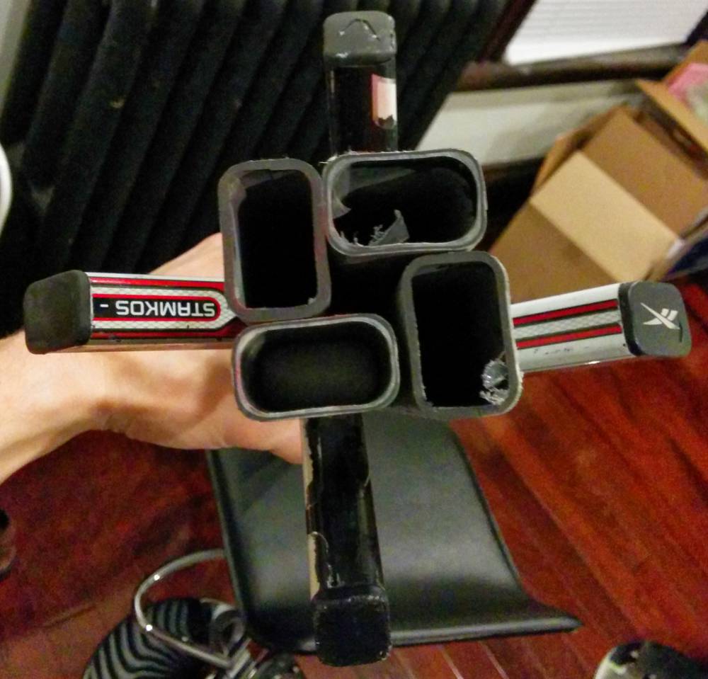 - Cover the hole at the top of each shaft with hockey tape — it covers the unsightly hole and sheet metal screws while keeping that good hockey look