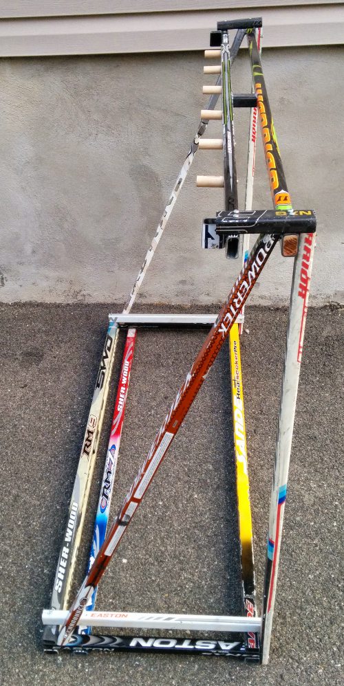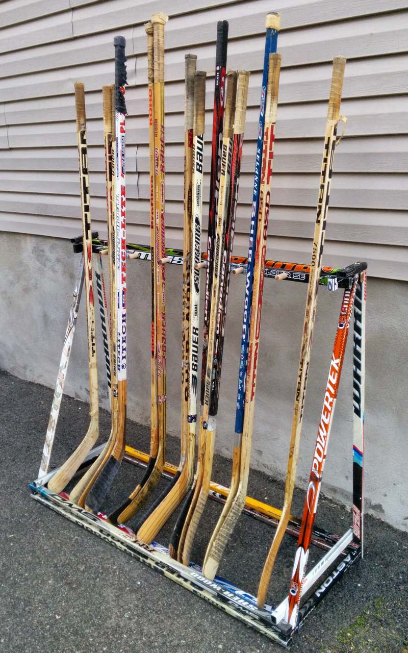 The hockey stick rack is not difficult to build. It only involves making some careful measurements and trusting the design.